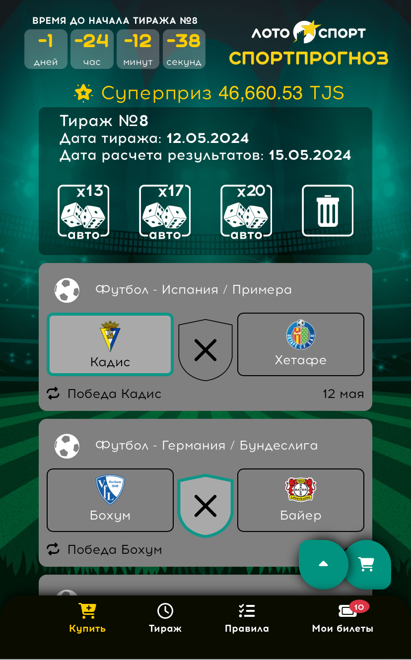- Иштирокчиёне, ки натиҷаҳои ҳамаи 13 рӯйдодро дуруст муайян кардаанд - Шоҳҷоизаи тиражро байни худ тақсим мекунанд;